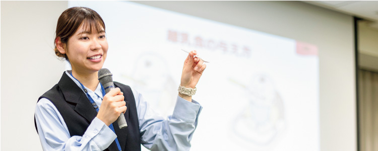 健康志向など、時代のニーズに応える商品開発や、食の安全を守る品質管理を行います。お客様相談室での専門的な対応を担うことも。栄養と衛生の知識を活かし、製品を通じて多くの人の豊かな食生活を支える仕事です。