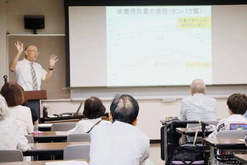 三浦准教授は、厚生労働省が定めている食事の基準は5年ごとに改訂されており、日本人の食生活等は時代によって変化していることを解説し、シニア世代の食生活事情について説明しました。
