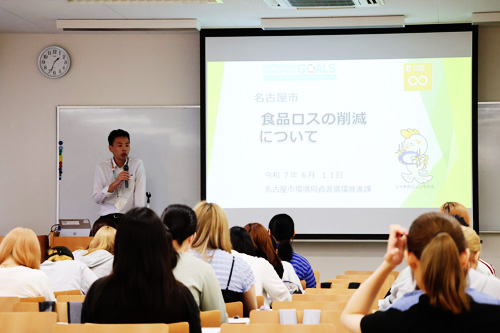 令和7年6月11日(水)の授業では、名古屋市環境局の職員の方をお招きし、名古屋市におけるごみ問題および食品ロスに関するご講演をいただきました。
