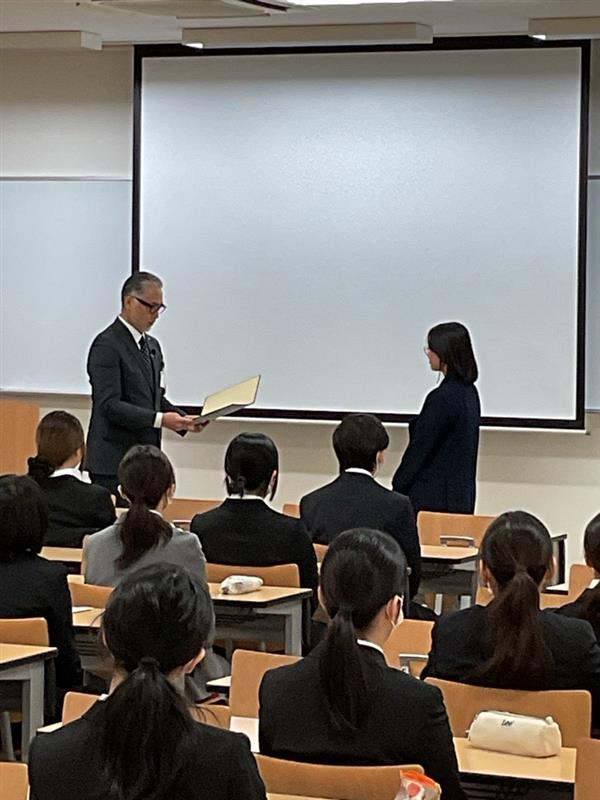 受賞者に名古屋文理大学短期大学部 滝川嘉彦理事長より賞状と金一封が贈呈されました。
