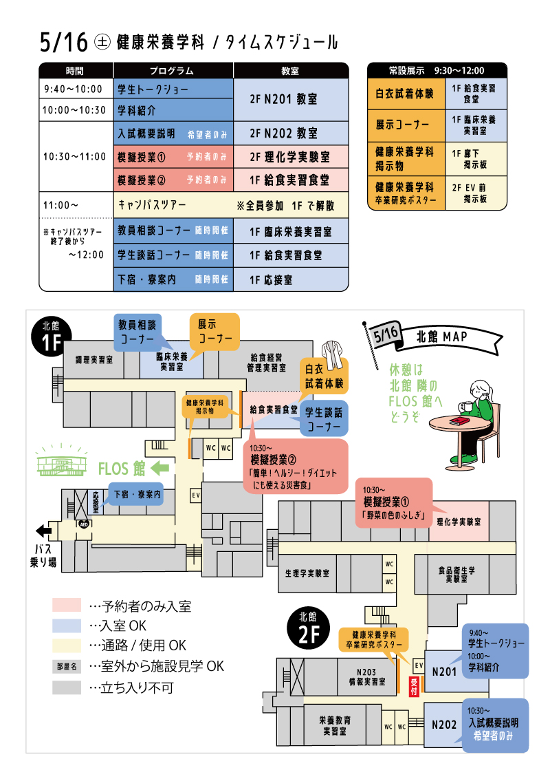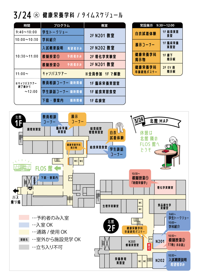 健康栄養学科・フードビジネス学科 午前/10:00〜11:30、午後/14:00~15:30