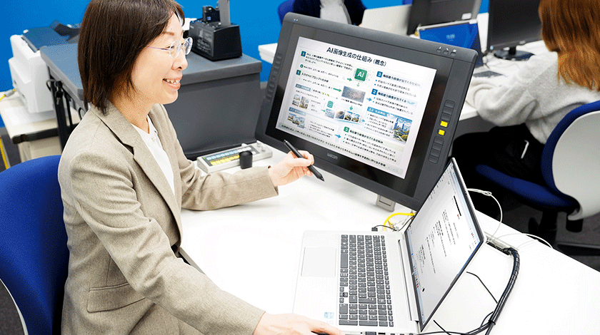 AIを活用して言語情報や画像情報を整理・生成・分析する方法を学びます。AIを情報処理の支援ツールとして捉え、自分の意図や判断を反映した制作物を完成させます。