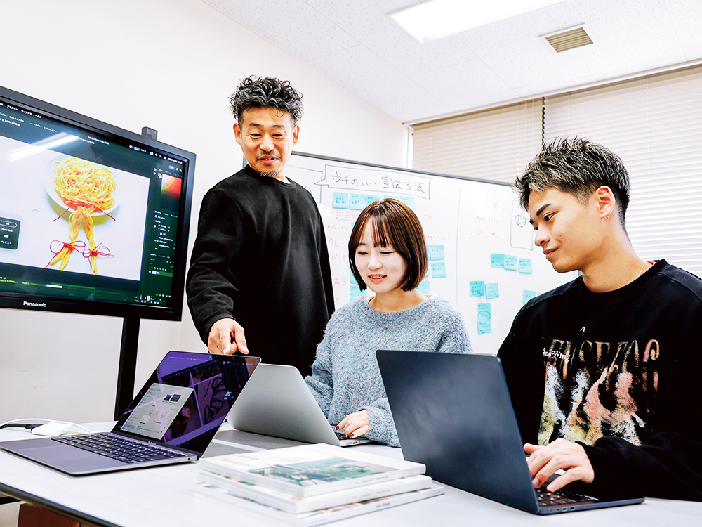 パッケージデザインやSNSのプロモーション動画作成など、企業と連携しながら食をテーマにしたクリエイティブワークに取り組みます。卒業制作では「食とデザイン」「メディアとしての食」を軸に作品を制作し、稲沢市荻須記念美術館で開催する「ぶんり展」で展示します。実践的な学びでアイデアを形にするための思考力とスキルを身につけ、社会で役立ててもらえばと思います。
