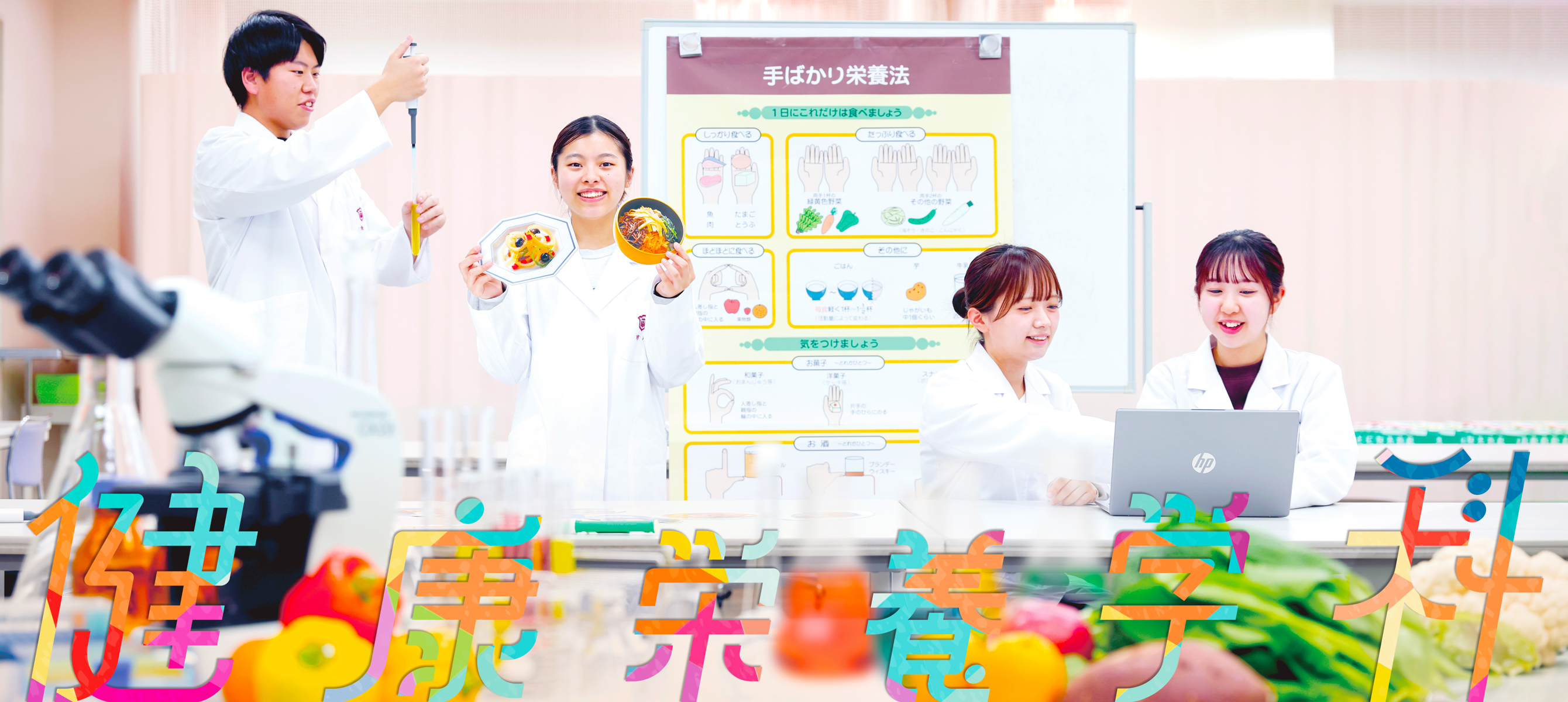 生活習慣病予防や健康寿命の延伸を目指して、管理栄養士の社会的ニーズは年々高まっています。健康栄養学科では「教員が学生と共に歩む二人三脚の教育」と「独自の国家試験対策」により、現場で活躍できる管理栄養士を育成します。