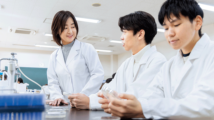 食品の細菌検査、環境微生物や手指洗浄の試験、食品添加物の分析などを行います。食品の安全性や衛生管理を理解し、管理栄養士の業務に必要な実践力を養います。