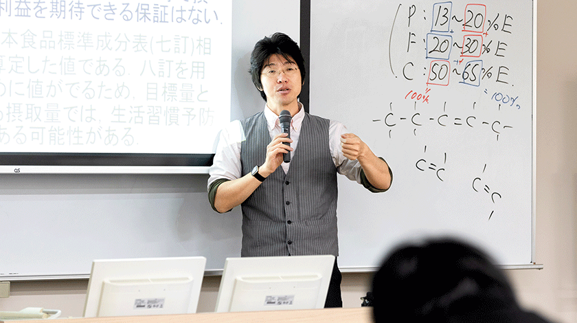 栄養教育プログラムの計画から立案・実施・評価・再立案まで、一連の栄養教育のプロセスを学びます。グループワークやロールプレイングを通して、栄養教育の方法を実践的に身につけます。