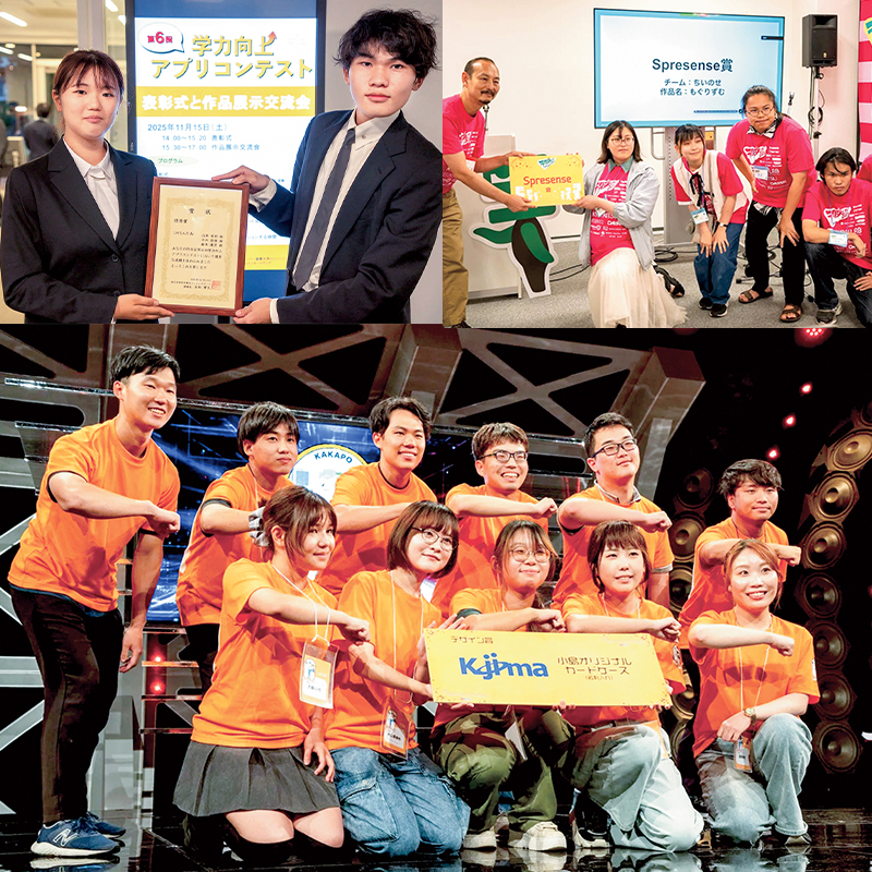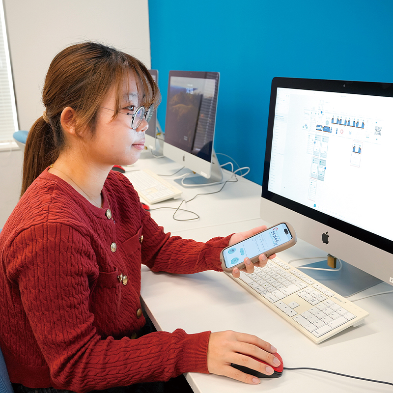 先輩たちと一緒に全国のハッカソンや開発イベントに出場し、アプリのアイデア・デザイン・開発にチャレンジして、2024年は7回連続で賞を獲得しました。プロジェクトでは通常の授業とは異なり、チームで一つの作品に取り組む機会が多くあります。その中で、チームのために自ら行動するなど、以前の受け身だった自分とは違い、積極性が身についていくのを感じました。途中で上手くいかずに悔しい思いもしましたが、先生や先輩のフォローを受けながら次に活かす努力を重ねたことで、確かな成長につながったと感じています。