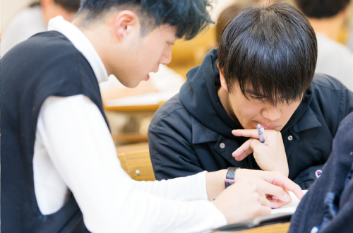 大学で高度な学習を行い、知識をチカラに変えていくためには、自分で問題点を見つけ出し、解決策を導き出す力=基礎力が欠かせません。2012年度に開設された基礎教育センターは、学生一人ひとりに最適な基礎力育成を行う専門組織です。全ての学びの基盤となる論理的な思考力や表現力、コミュニケーション能力を養います。基礎教育センターで行う日本語力と数的処理の授業は課題解決型のグループワークが中心。TV、新聞、SNSで取り上げられるタイムリーな話題を使って、答えのない問題にも挑戦。1つのクラスを複数の職員がサポートするので安心して学ぶことができます。