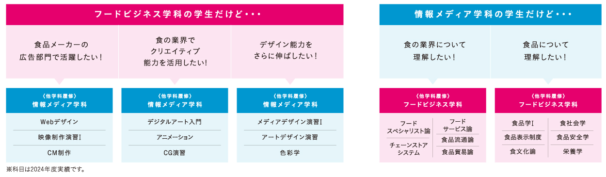 フードビジネス学科と情報メディア学科との間で他学科履修制度を設けています。