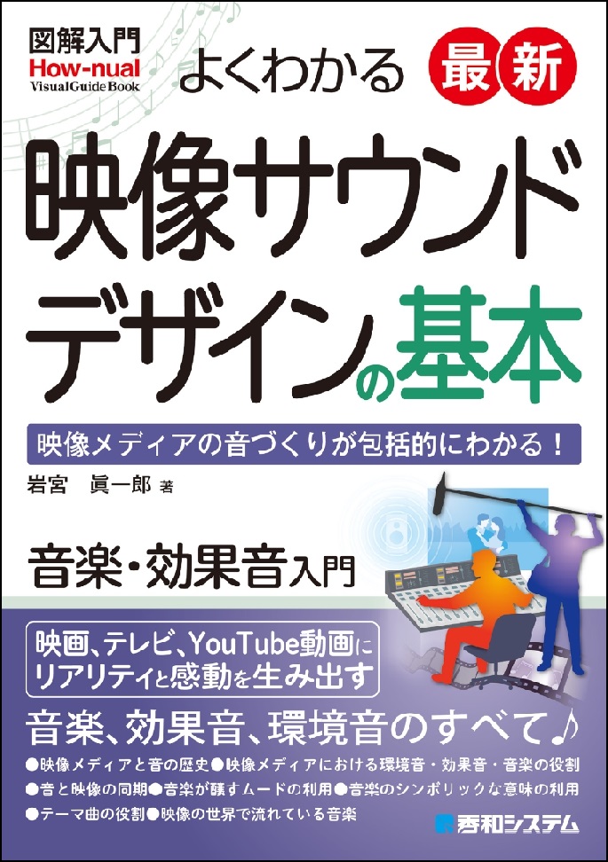 まず、この書名から誤解が生じないように説明します。一見すると、「映像・サウンド・デザイン」と、まるで情報メディア学科のコース名のようにも見えますが、実はそうではなく、この本は「映像のためのサウンドデザイン」ということで、映像制作をするときに使う音の話です。昨今、映像投稿サイトが人気であることもあり、映像制作が盛んに行われていますが、映像作品には音や音楽がつきもので、それをどうやって付けたらいいか、ということについては、あまり情報がありません。そんな中、音と映像の相互関係などについて専門的に研究している著者が、専門外の人でもわかるようにやさしく解説しているのが本書です。映像における音は、大きく分けて効果音とBGMになりますが、本書では、その両方についてとても詳しく解説しています。著者の研究によるオリジナルな知見もあり、大変参考になる書物としておすすめいたします。