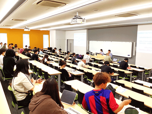 講座の冒頭では、まず自分自身の心理傾向と消費者力のセルフチェックを行い、学生は自分が消費者トラブルに巻き込まれる危険度を数字で確認しました。その後、実際に発生している消費者トラブルの事例が紹介され、トラブルを防ぐためにどのような対策を講じるべきかについて、具体的な解説が行われました。