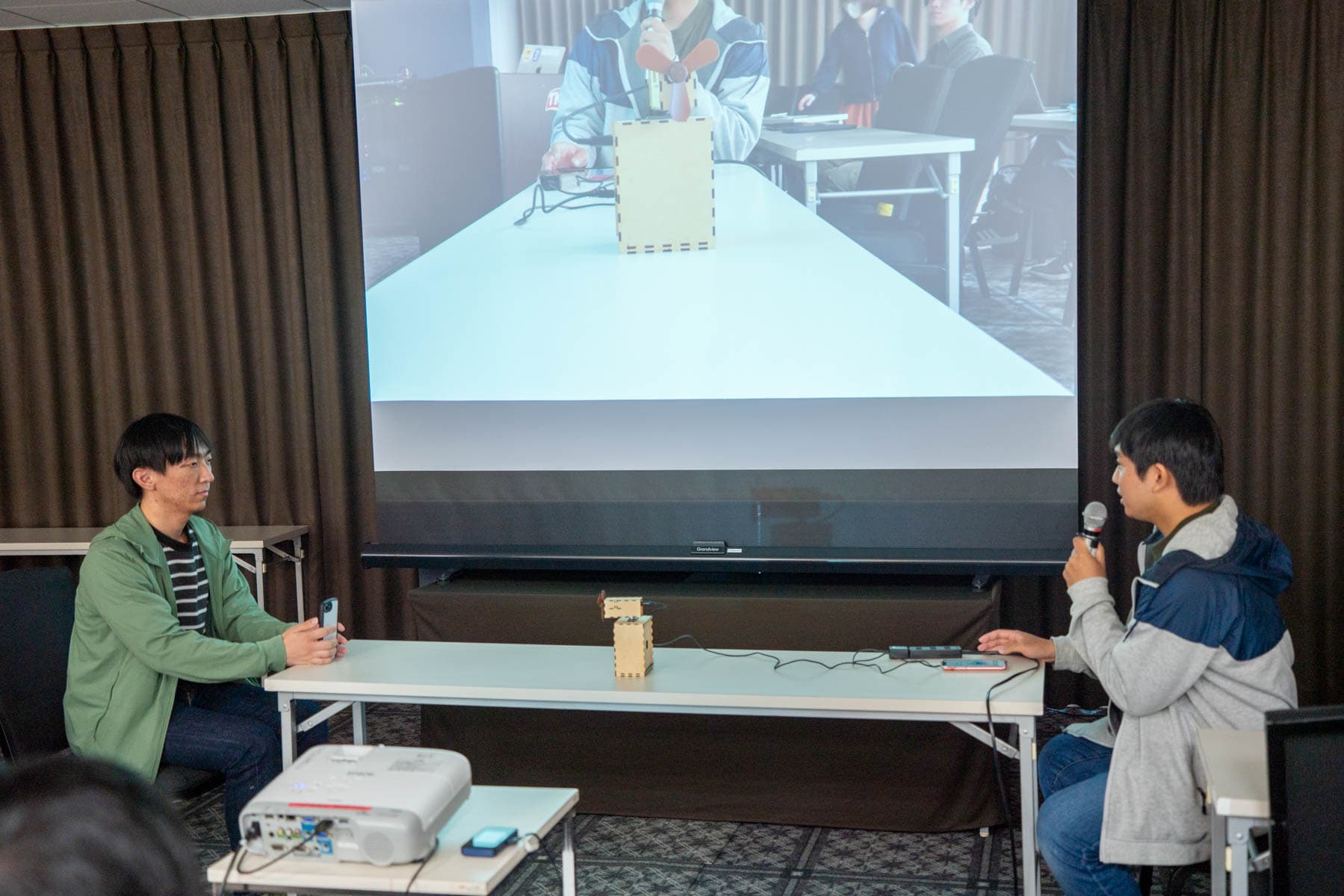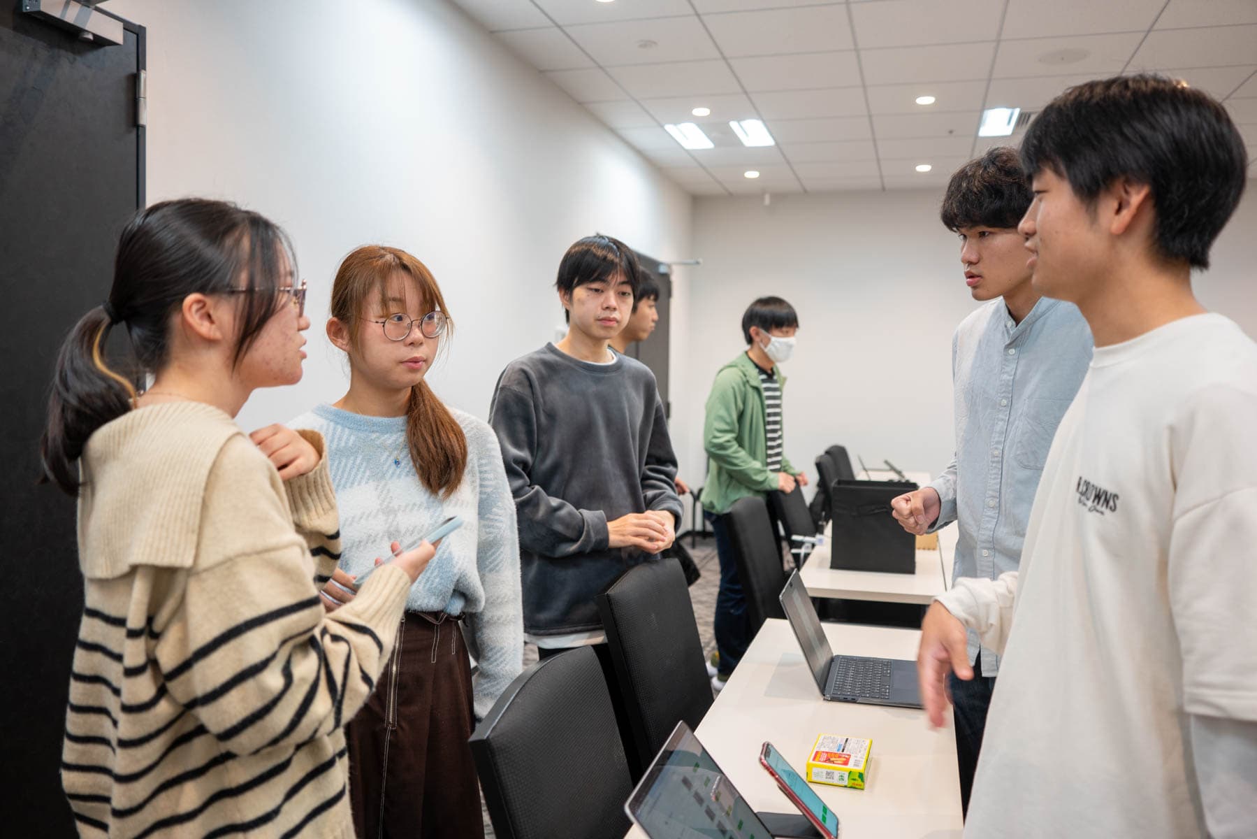 プレゼンテーション後は、参加者同士で作品に触れることができる展示会が行われ、学生たちは他大学の参加者と積極的に交流し、互いのアイデアや技術を共有しました。