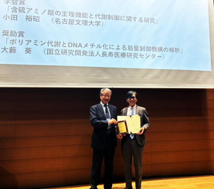 健康栄養学科の小田裕昭教授が、11月23日(日)に名古屋大学で開催された日本アミノ酸学会 第19回学術大会(JSAAS2025)にて学会賞を受賞しました。受賞テーマは、「含硫アミノ酸の生理機能と代謝制御に関する研究」です。要旨は、以下のリンクにあります。