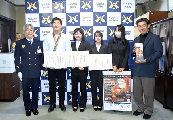 令和7年11月19日(水)、名古屋市消防局にて「火災予防メシ」のメニュー開発と広報物作成について、感謝状贈呈式が執り行われました。