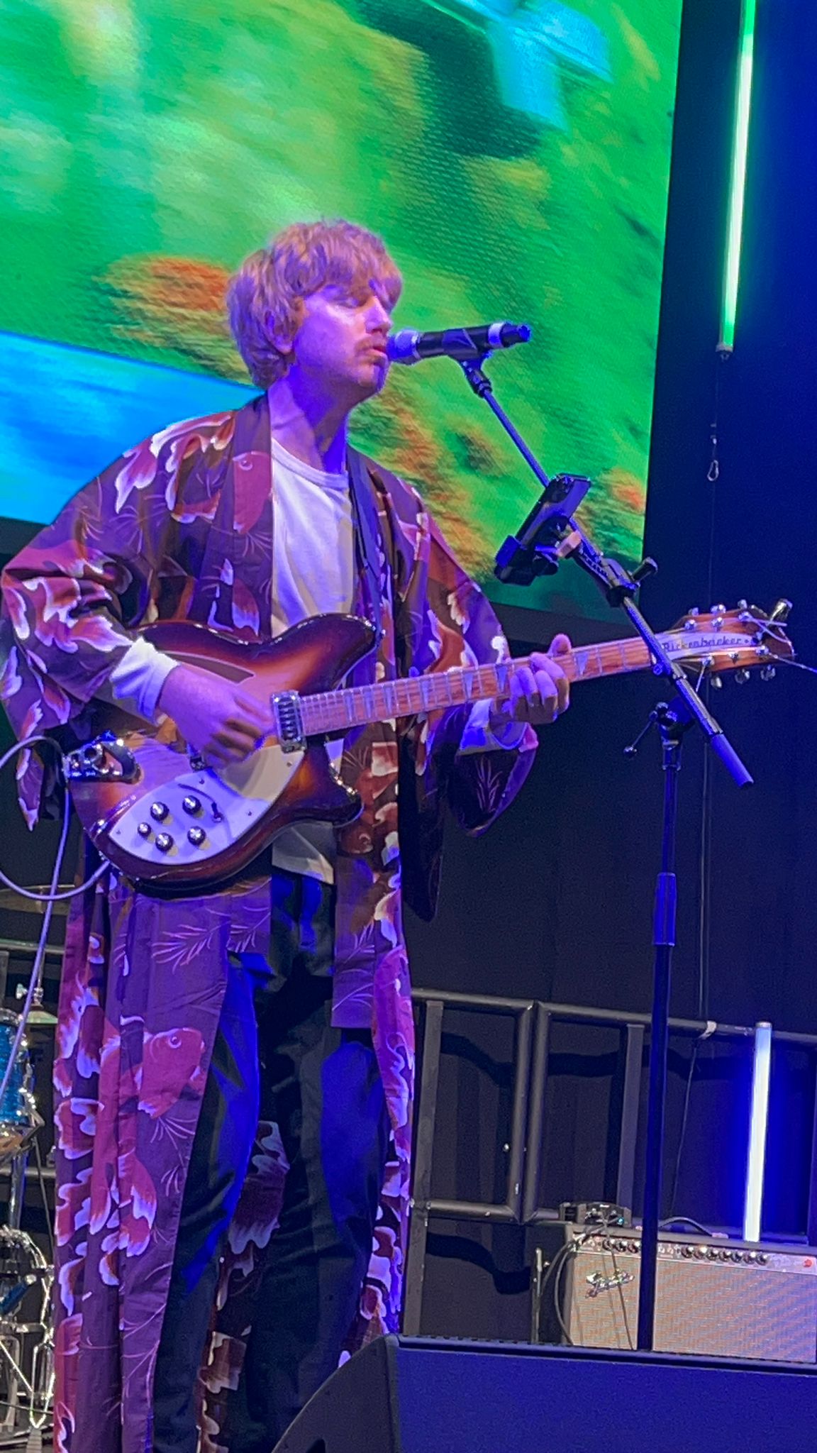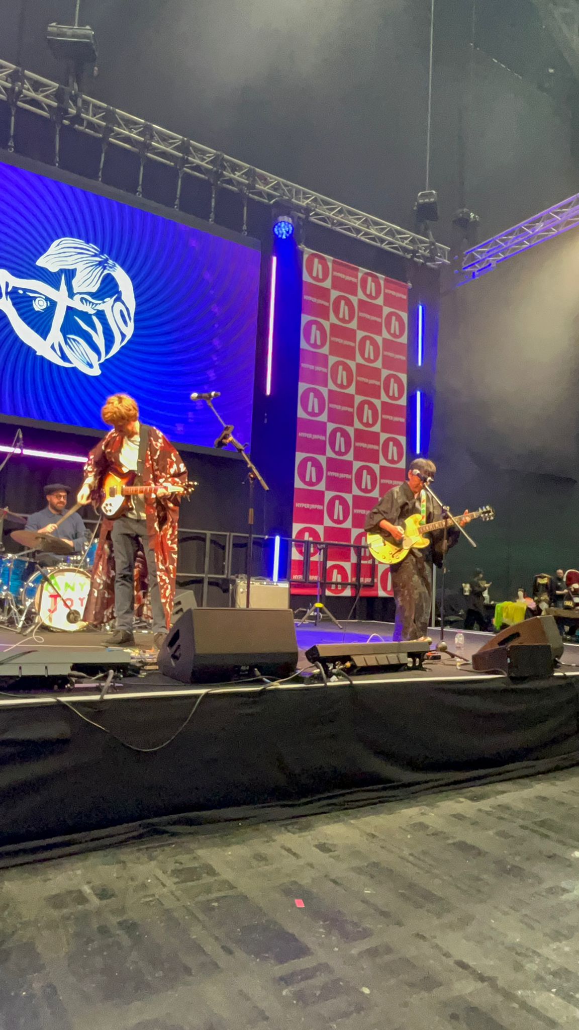 「Any Joy?」のライブでは、熱いパフォーマンスとともに映像が流れ、イギリスの観客も大いに盛り上がり、会場は一層熱気に包まれました。過去にもたくさんの有名アーティストが出演されているこの大規模なイベントにたくさんの学生が関われたことを誇りに思います。今後もサウンド、映像、デザインの分野で国際的にも活躍できる人材を育成していきたいと思います。