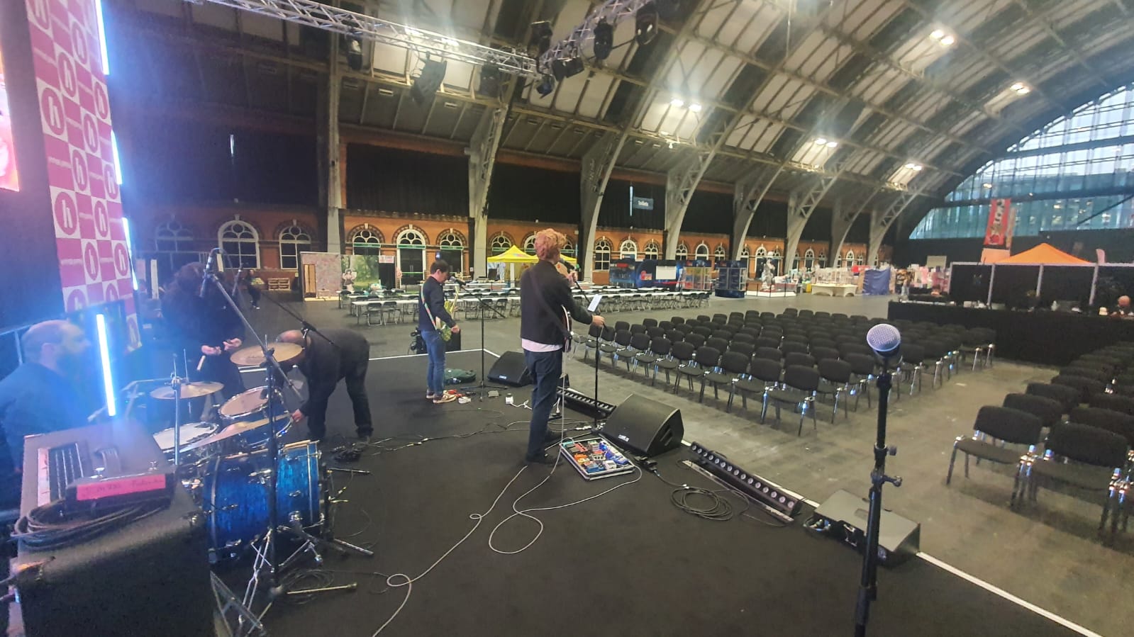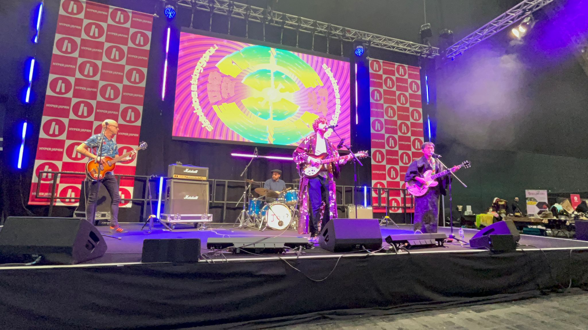 2025年11月15日[土]英国北部の主要都市マンチェスターでイギリス最大の日本文化イベント「HYPER JAPAN」が開催されました。情報メディア学部情報メディア学科サウンド制作コース主任、柴山一幸教授が率いるインターナショナルプロジェクト「Any Joy?」がこのイベントに出演しました。また、ライブの映像演出は、教員と学生が共同で制作しました。