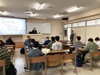 令和7年10月31日(金)、稲沢市立中央図書館の塚本館長様にお越しいただき、2つ目の課題のオリエンテーションが行われました。稲沢市内の3つの図書館の現状や課題、新しい取り組みについて解説していただいた後、「市立図書館の未来はどうあるべきか」という課題が課せられました。オリエンテーション後の質疑応答では、学生たちから積極的な質問があり、課題に真剣に取り組む姿勢が見受けられました。