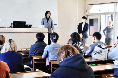 そして令和7年12月19日(金)、稲沢市秘書政策課様に再度お越しいただき、学生一人一人がエッセイを発表しました。学生たちは各々思い描いた居住地へのこだわりや稲沢市で得られるであろう理想の将来を語りました。稲沢市秘書政策課様は、「若い方にとって居心地の良いまち、魅力を感じるまちとはどういったものであるか参考となりました。いただいたご意見は市の総合計画作成に生かしていきたい。」とお話しされました。
