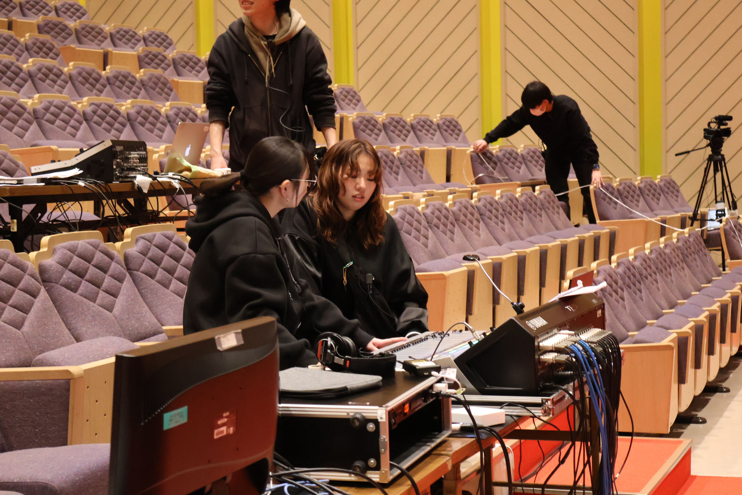今回も、スクリーンへの映像投影のほか、舞台上さまざまな演出を予定しています。照明部門、映像部門もとても意欲的に取り組んでいます。学生プロジェクト(サウンドプロジェクト、VRプロジェクト、舞台制作プロジェクト、映画・映像プロジェクト、デザインプロジェクト)やサウンド制作コース専門科目「舞台制作」「照明技術」受講生などの協力も得て、本格的に企画・運営を進めていきます。後日配信も予定しています。