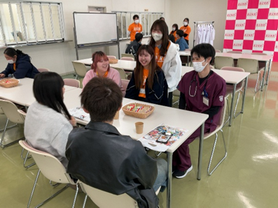 また、教員・学生との相談コーナーも設けています。入試などについての話や大学生活の様子など、在学生からリアルなお話を聞くことができます。今回も、参加された皆様と在学生とのお話が活発に行われていました。その他にも、オープンキャンパスでは学生寮や下宿の案内も行っております。通学に不安を感じられる方は、お話を聞いていただくだけでも大丈夫なので、お気軽にお声がけください。