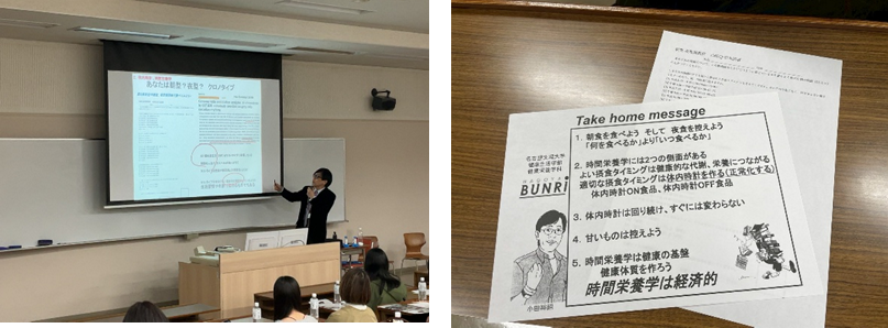 模擬授業①のテーマは「時間栄養学~食事のタイミングは体内時計と体質を変えて健康に影響する~」でした。
