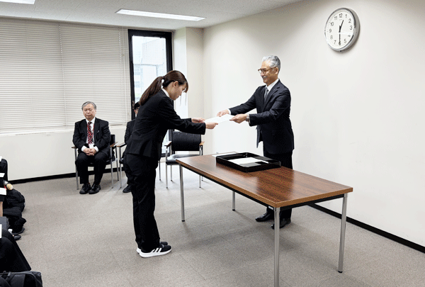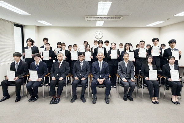 令和8年4月23日(木)に学内奨学金の「名古屋文理大学 第四種奨学金」贈呈式を行いました。